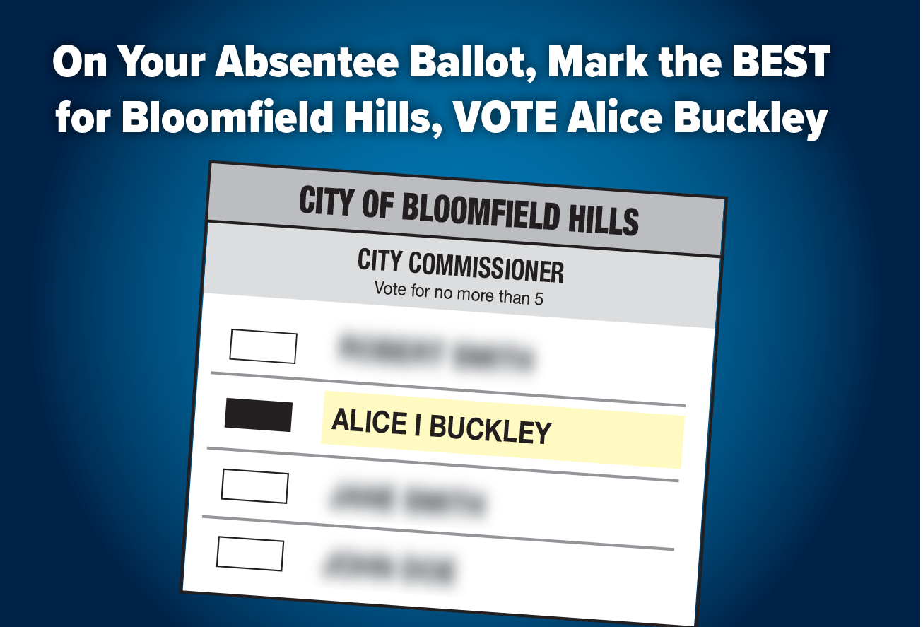 “I will work to maintain property values and our sense of community, preserve and protect our majestic, tree-lined streets and woodlots, and keep us safe!”